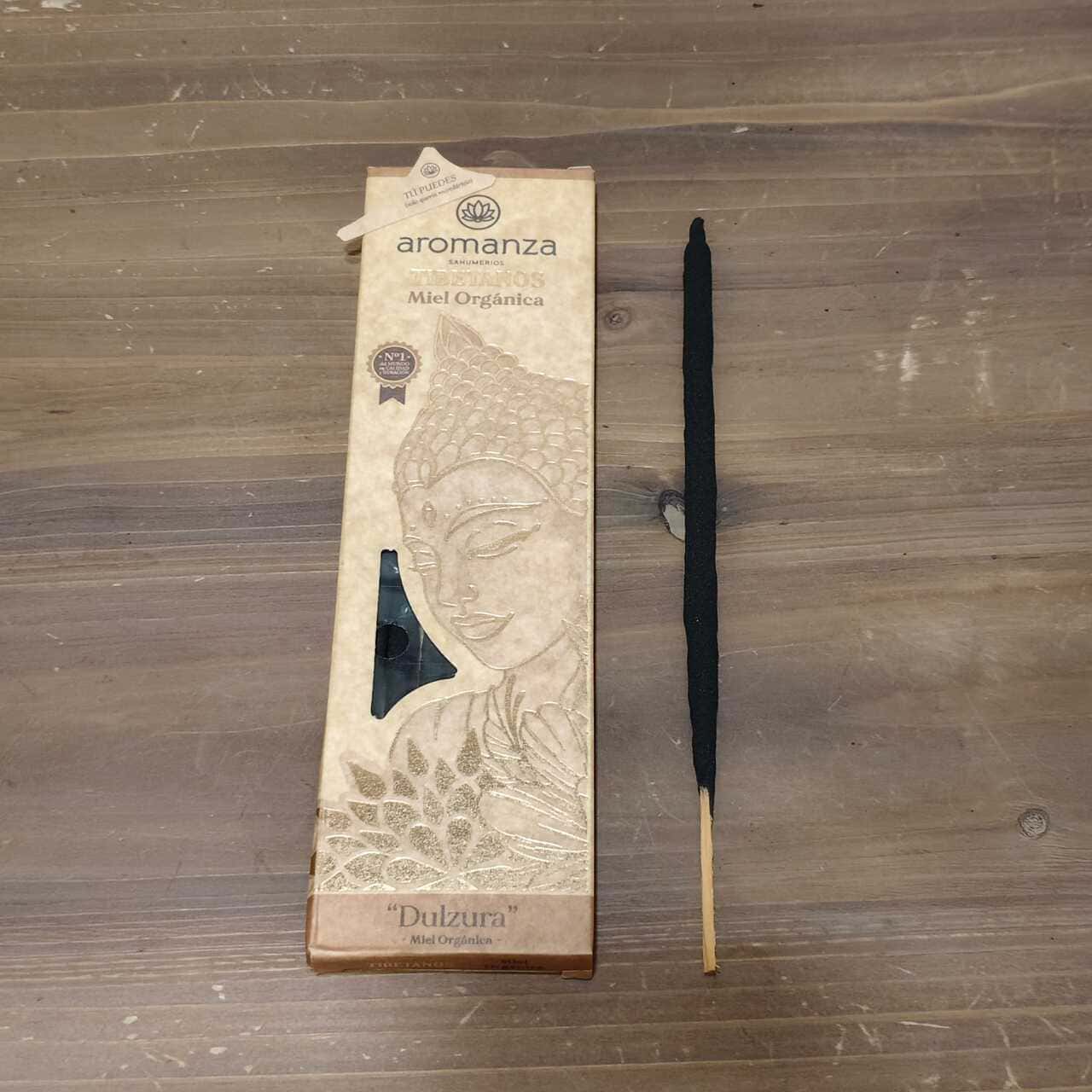 Elaborado por Aromanza con miel orgánica certificada, este sahumerio premium combina la tradición ancestral de usar miel en rituales de endulzamiento con la calidad superior que caracteriza a la marca. Su distintivo color oscuro contrasta bellamente con la dulzura de su aroma, simbolizando la profundidad y riqueza de las bendiciones que atrae.