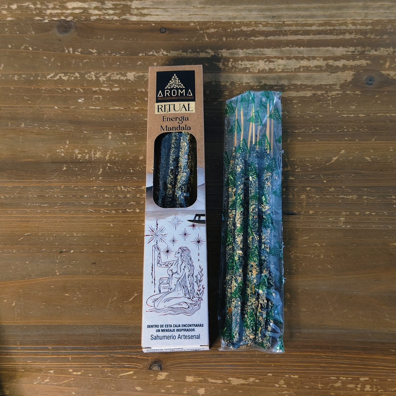 El Incienso Ritual Energia Mandala Aroma Aroma es un incienso artesanal disenado para activar la energia sagrada del mandala. Presentado en cajita artesanal de 20g con mensaje inspirador, cada caja incluye un mensaje inspirador para acompanar tu practica.